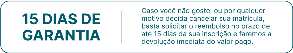Você terá acesso por 1 ano aos materiais do combo e às gravações do curso na plataforma, podendo consultar o conteúdo sempre que precisar e renovar após o período limite.